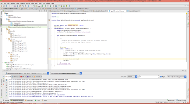 Bước cuối cùng: các bạn vào file class của Acitivty Splash screen này
